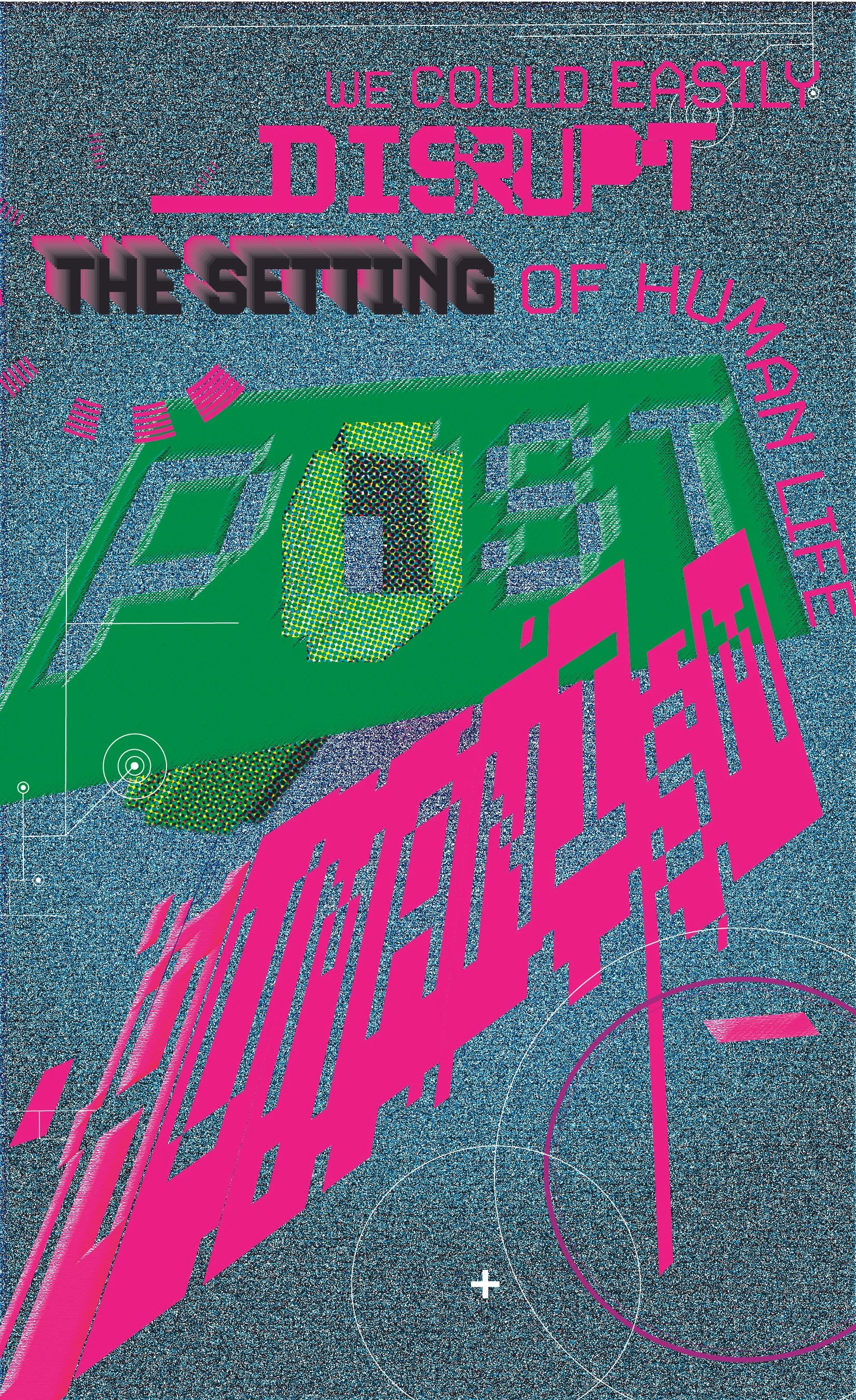 An conceptual piece on the advancement on computer technology and the evolution of humankind. The concept how it can be both bad and good with the advancement of technology. Typefaces were researched to be similar to a motherboard. Featured in the online exhibition Speculative Typography in the Pentacle.