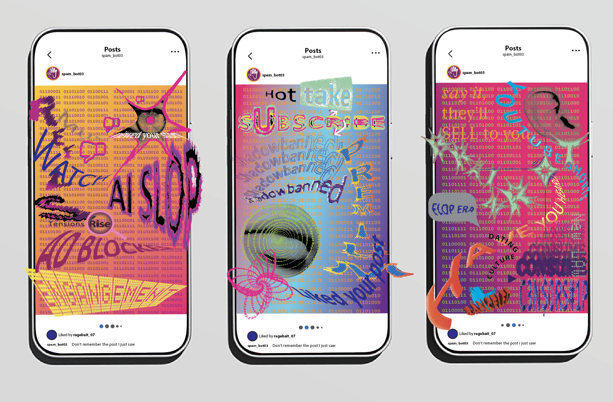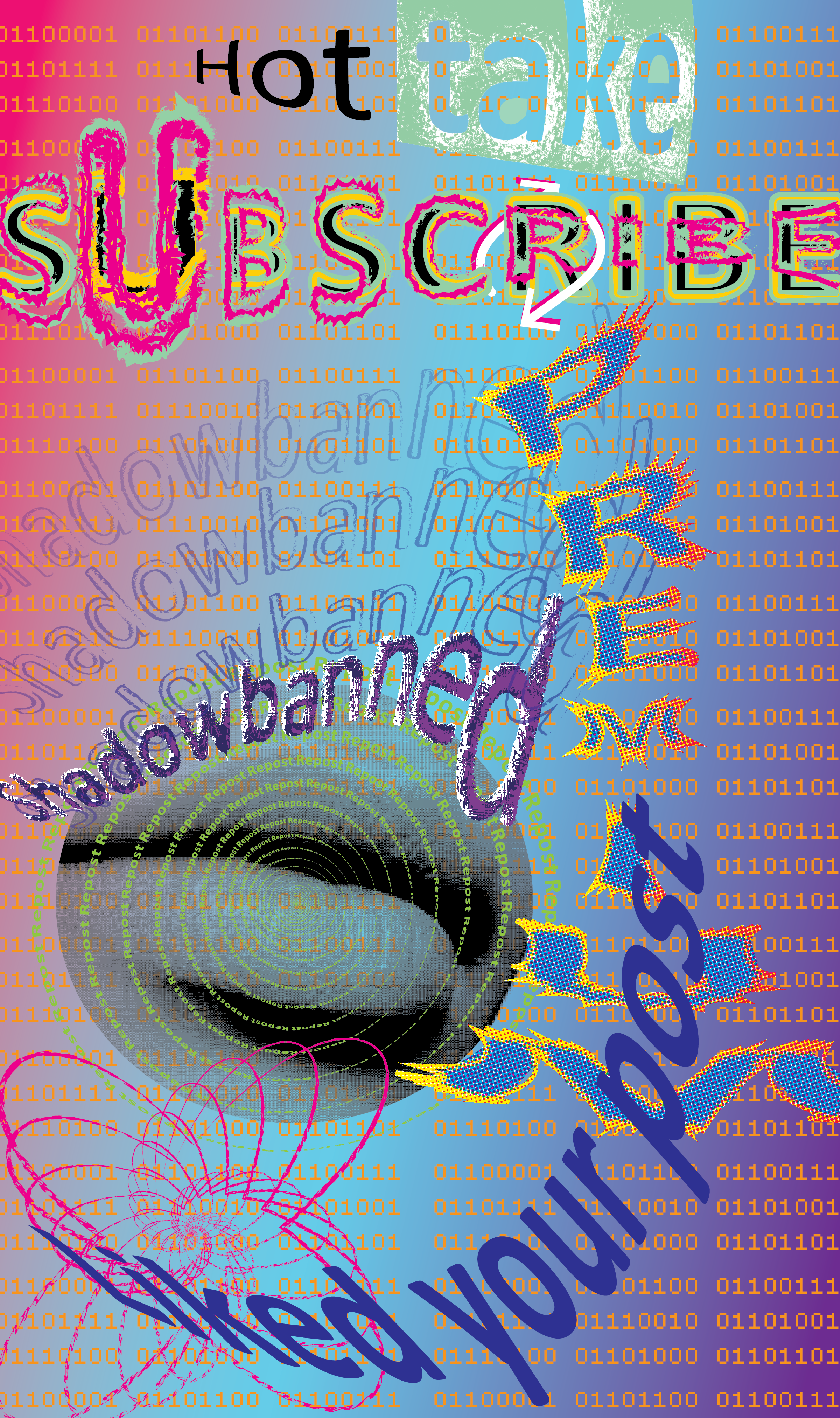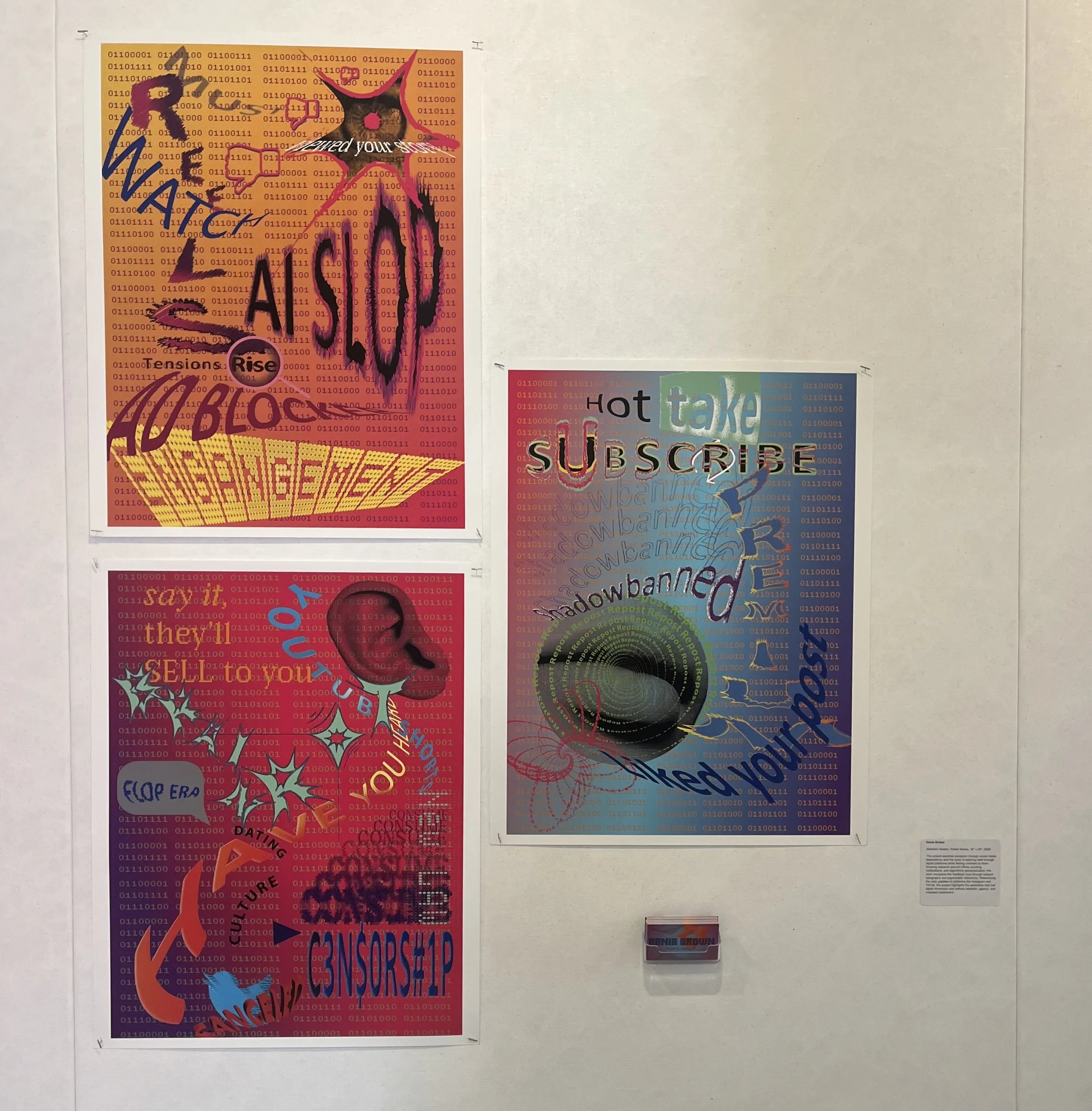 These works contain words that tie to social media addiction through a psychedelic lenses. Featured in the 2026 FIU Thesis exhibition.