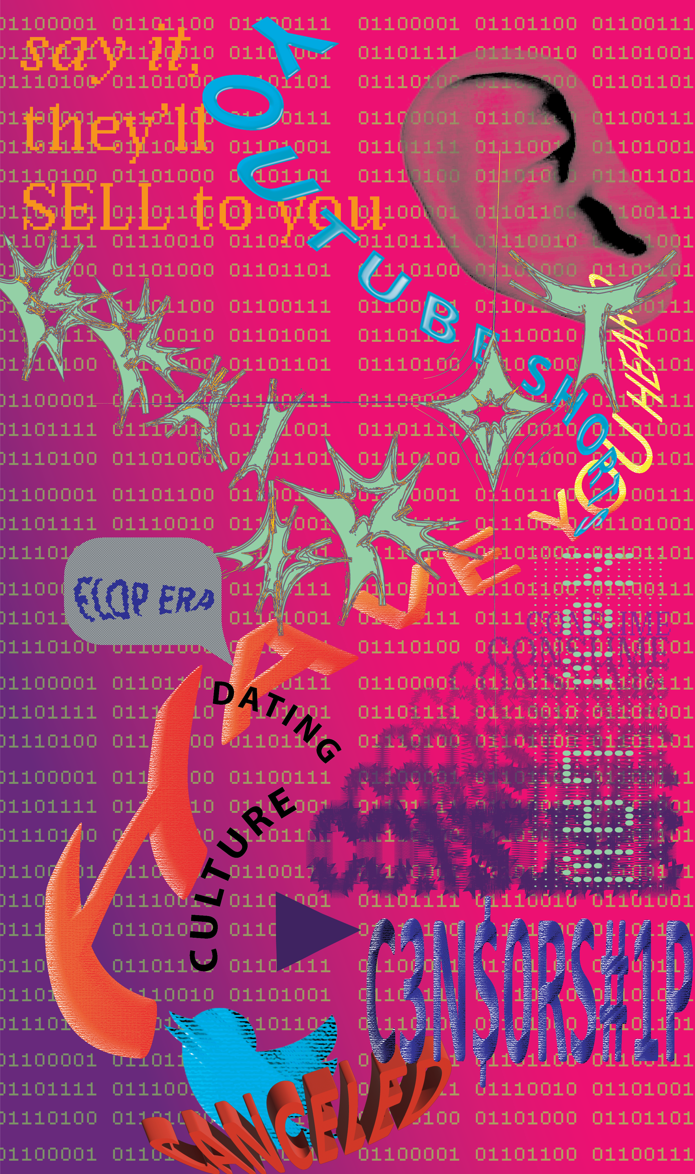 An usage of Illustrator was implemented to tweak this deconstructed type of my first name. I wanted make it look like an old CGI animation texture.